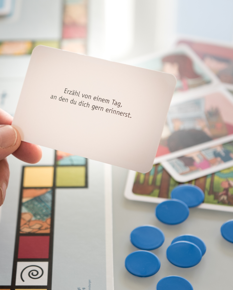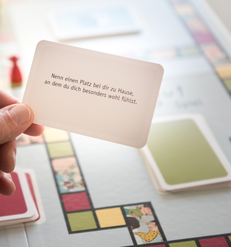 Die 270 Bild- und Fragekarten des Spiels fokussieren auf unterschiedliche Schutzfaktoren, die helfen können, vorhandene Belastungsrisiken zu minimieren und die eigene Lebenssituation gut zu bewältigen.