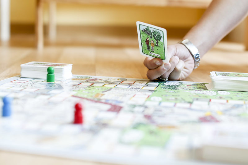 Das Brettspiel enthält 300 Themenkarten mit Fragen zu den Bereichen