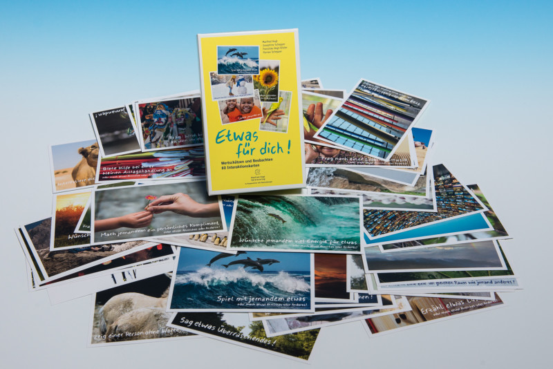 Wohlwollende, wertschätzende Interaktion fördert individuelle und gemeinsame Entwicklungsprozesse. Wer sich so verhält, wie ihm selbst begegnet werden soll, erhöht die Wahrscheinlichkeit, dass sich wünschenswerte Handlungen gegenseitig bestärken und wiederholen. Etwas für Dich! lädt mit seinen Interaktionskarten dazu ein, sich mit wertschätzenden Handlungen in unerwarteten Situationen gegenseitig zu überraschen und sich für wohlwollende Überraschungen zu sensibilisieren.