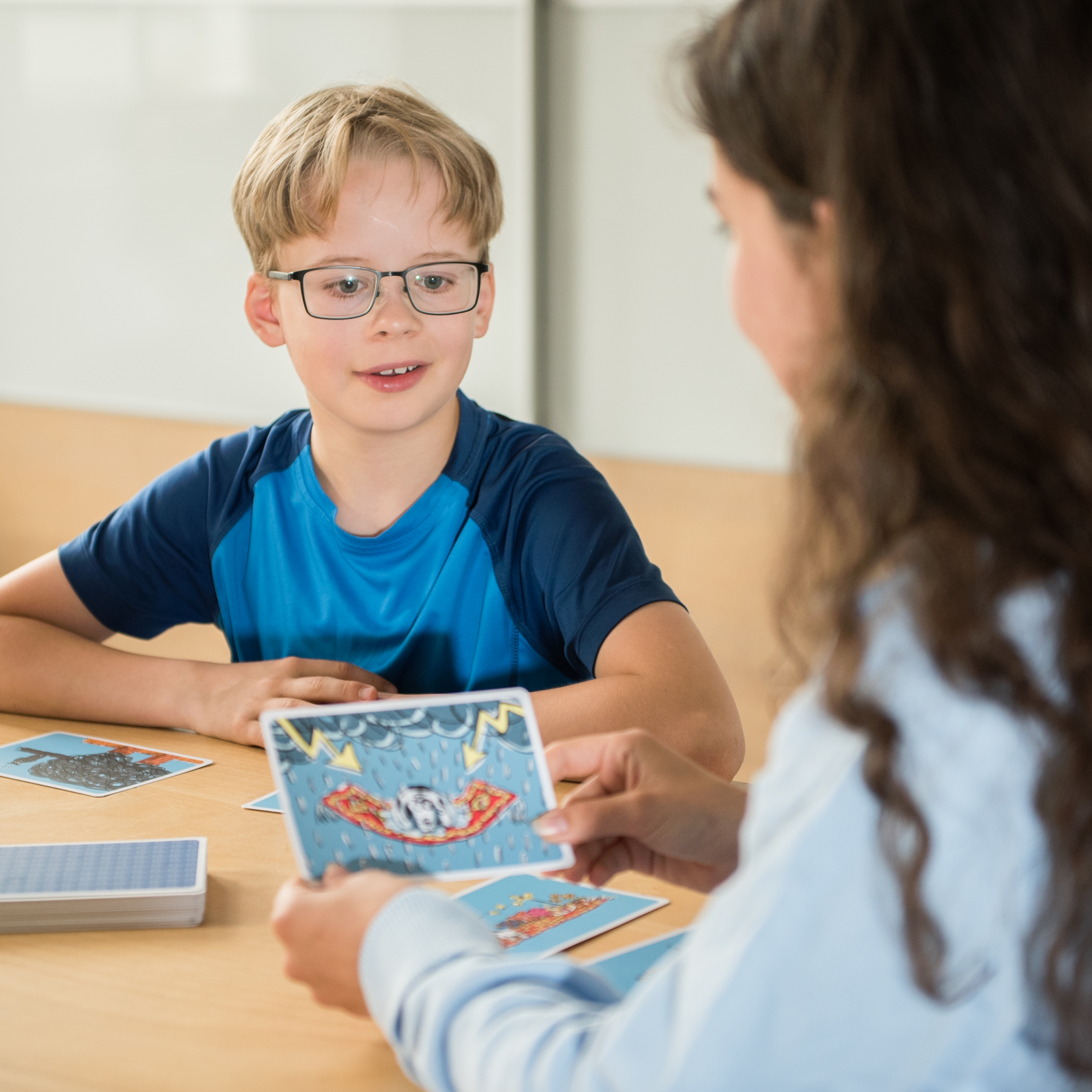 50 Therapiekarten für die kreative Psychotherapie für den Umgang mit dem Auf und Ab des Lebens. Die Bildmotive unterstützen Kinder, Jugendliche und Erwachsene dabei, sich ohne Worte zu erinnern, zu identifizieren und Zukünftiges zu antizipieren. Sie helfen, Gespräche anzuregen, festgefahrene Situationen aufzulösen, Lebensphasen und prägende Ereignisse, damit verbundene Gefühle und Selbstwahrnehmung sowie individuelle Bewältigungsformen zu thematisieren und ressourcen- und lösungsfokussierte Interventionen zu entwickeln. Sie eignen sich in der Biographiearbeit dazu den eigenen Lebensfluss zu rekonstruieren und zu interpretieren einmalige Lebensereignisse zu verarbeiten und zu sortieren sich zu erinnern und zu erzählen und die Zukunft zu antizipieren.