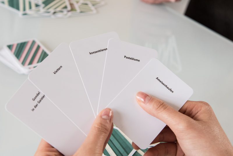 spontanen Geschichten weiterzudenken und weiterzuerzählen. Das Ziel des Spiels ist, möglichst viele dieser genutzten Wortkarten zu sammeln.